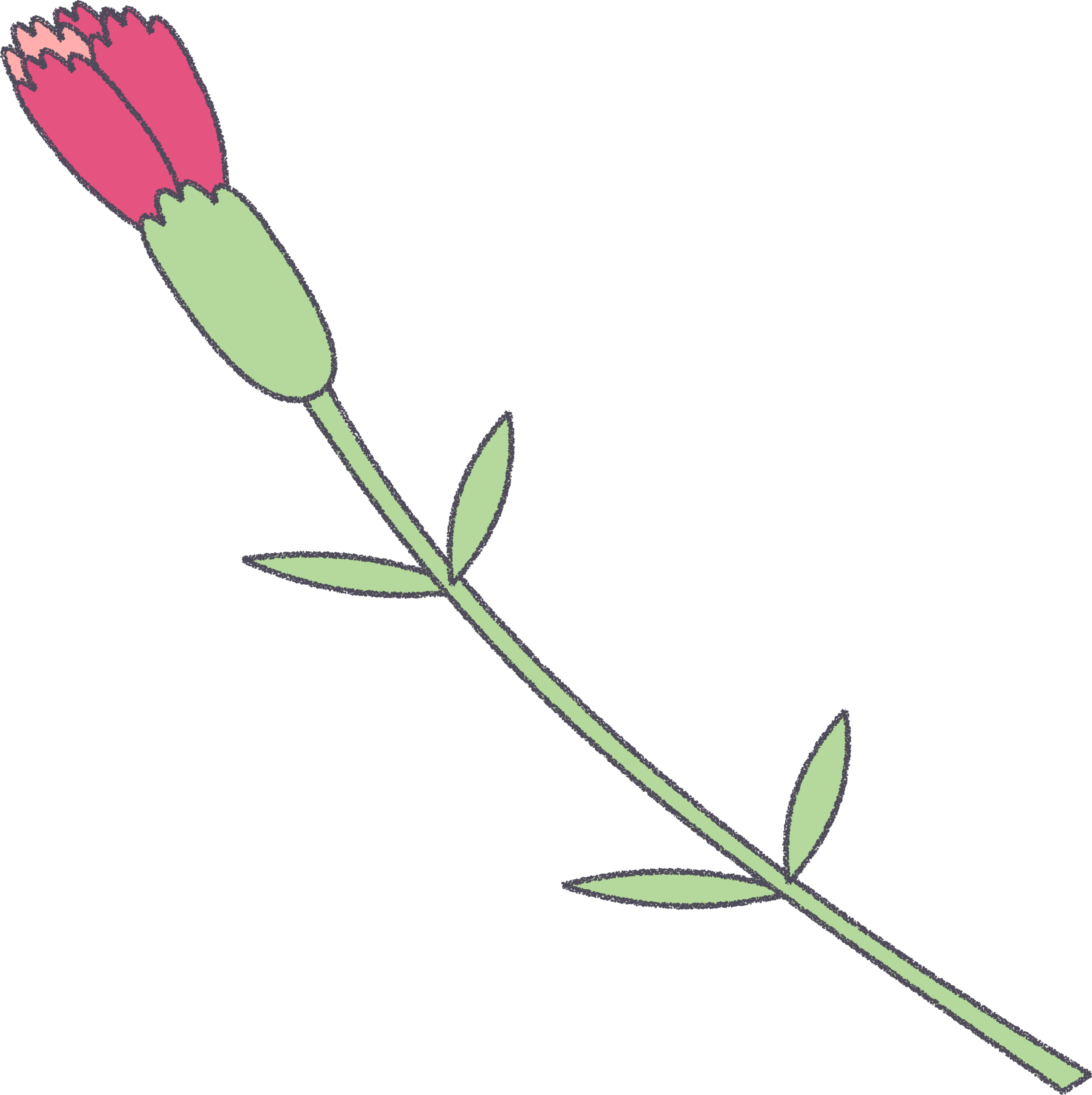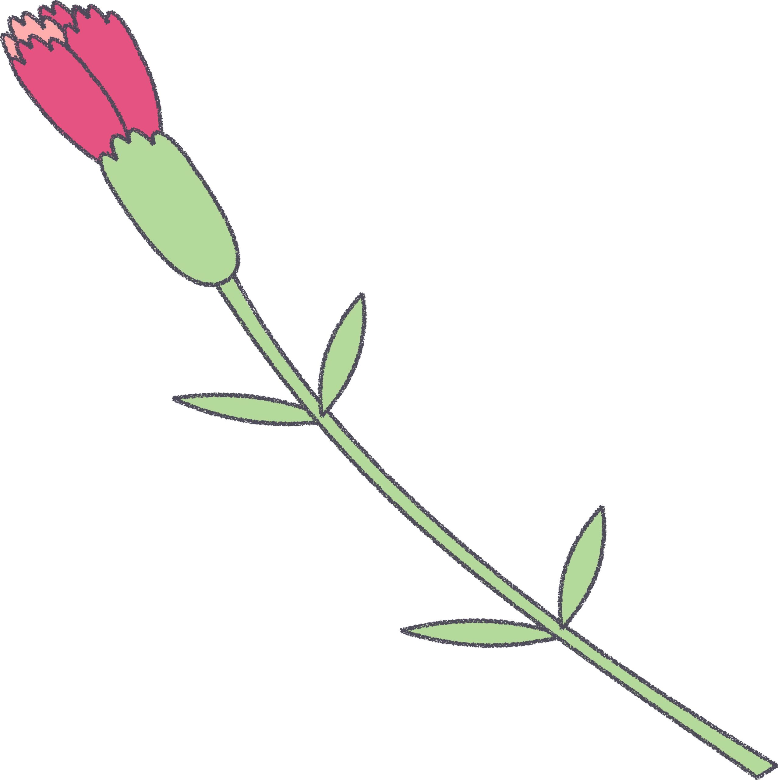 母の日に使えるピンクのカーネーションのつぼみのフリーイラストです。茎・葉付きのシンプルなデザインです。商用利用OK・クレジット不要で無料ダウンロードできます。
