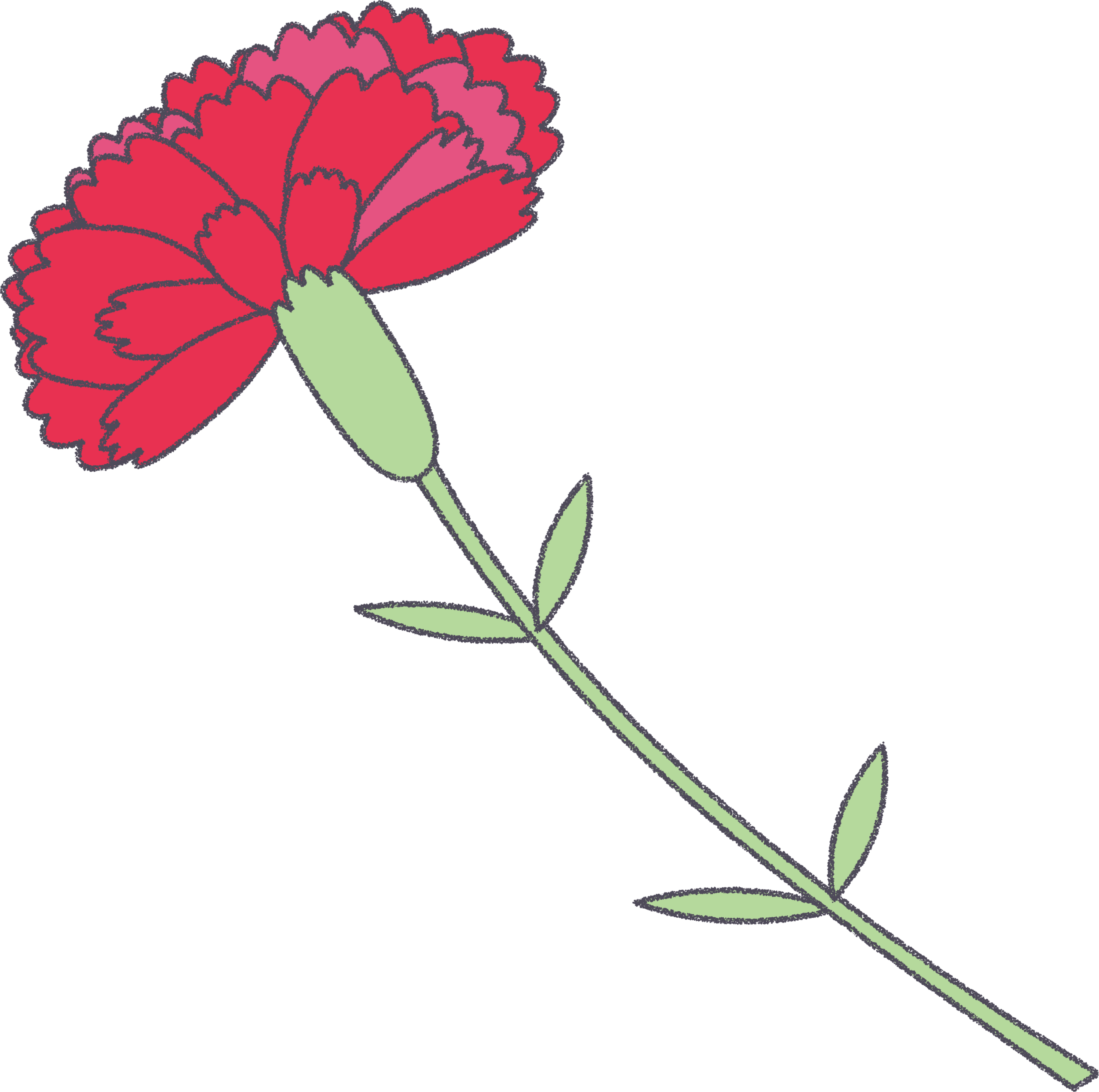 母の日に使える赤いカーネーションのフリーイラストです。茎・葉付きで花束やカードのデザインにも使いやすい素材です。商用利用OK・クレジット不要で無料ダウンロードできます。