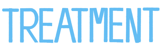 「TREATMENT」のロゴ風テキストイラストです。水色の手書き風フォントで、トリートメントボトルのラベルやバス用品素材としてそのまま使えます。商用利用無料でダウンロードできます。