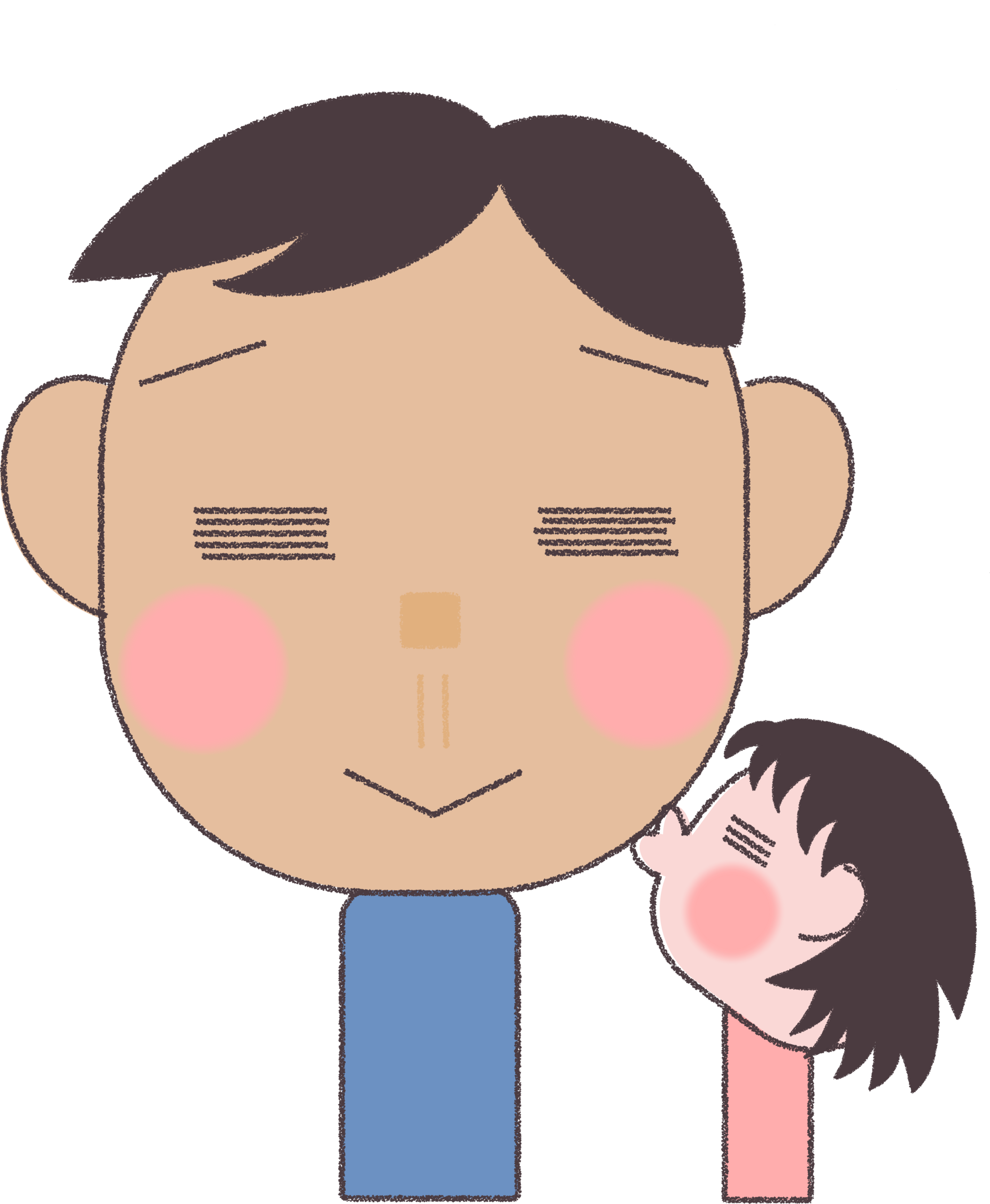 子供にほっぺをキスされて、思わず鼻の下を伸ばして喜んでいるお父さんと子供のフリーイラストです。父の日のカードやブログ・SNSの投稿に商用利用可でご使用いただけます。