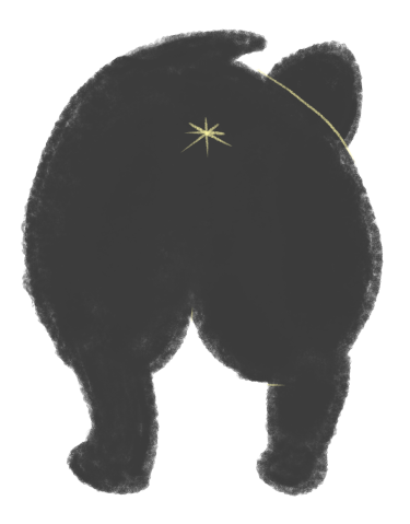 黒いフレンチブルドッグの後ろ姿のイラスト(ちょんまる)