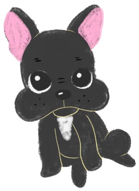 まんまるい目の黒いフレンチブルドッグのイラスト(ちょんまる)