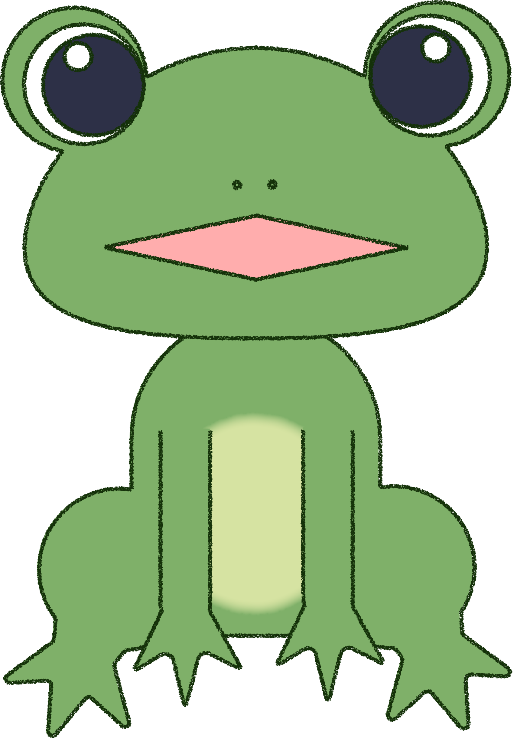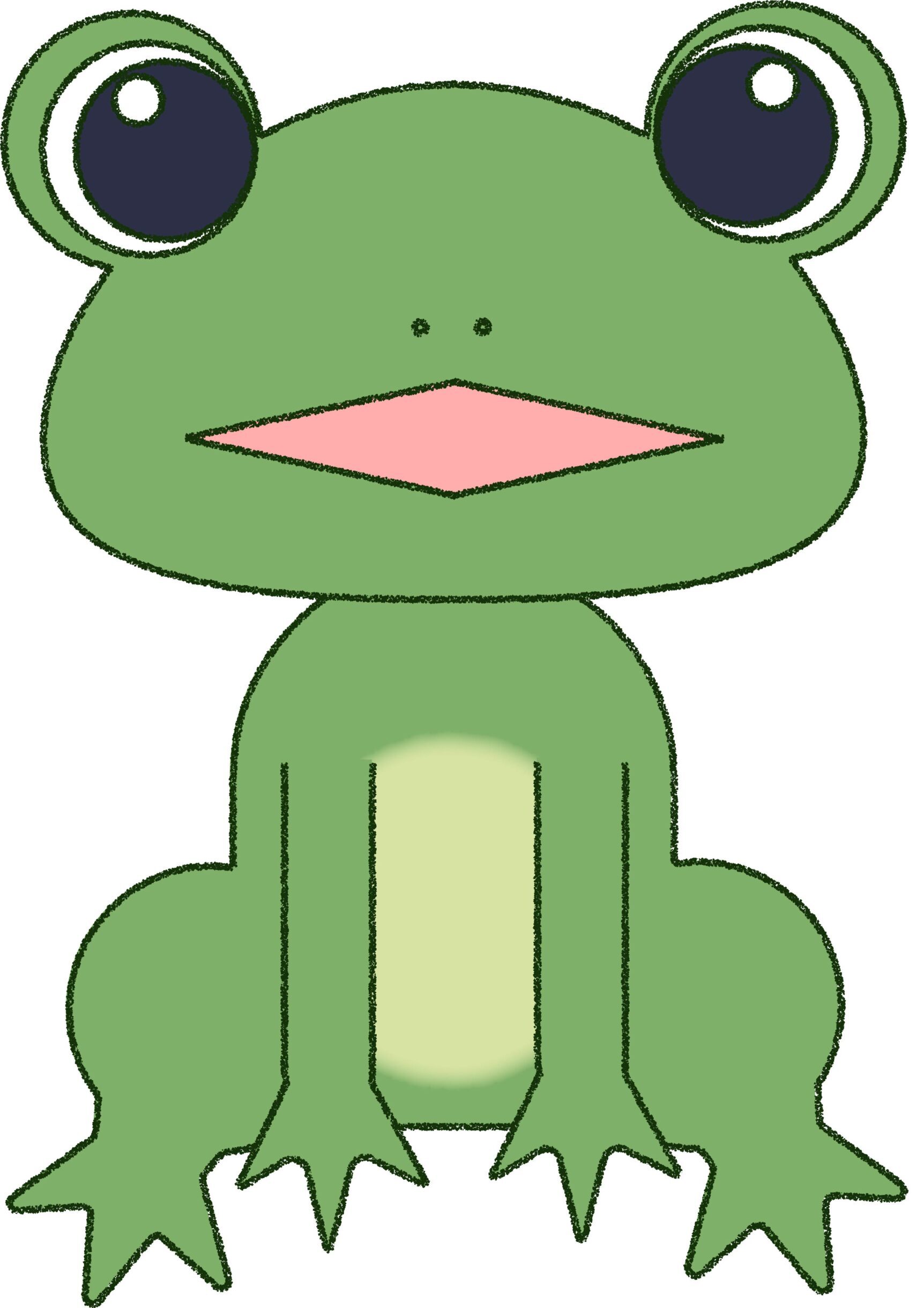 口を大きく開けたかわいいカエルのイラストです。梅雨・6月の季節コンテンツやブログ・教材に商用利用可でご使用いただけます。