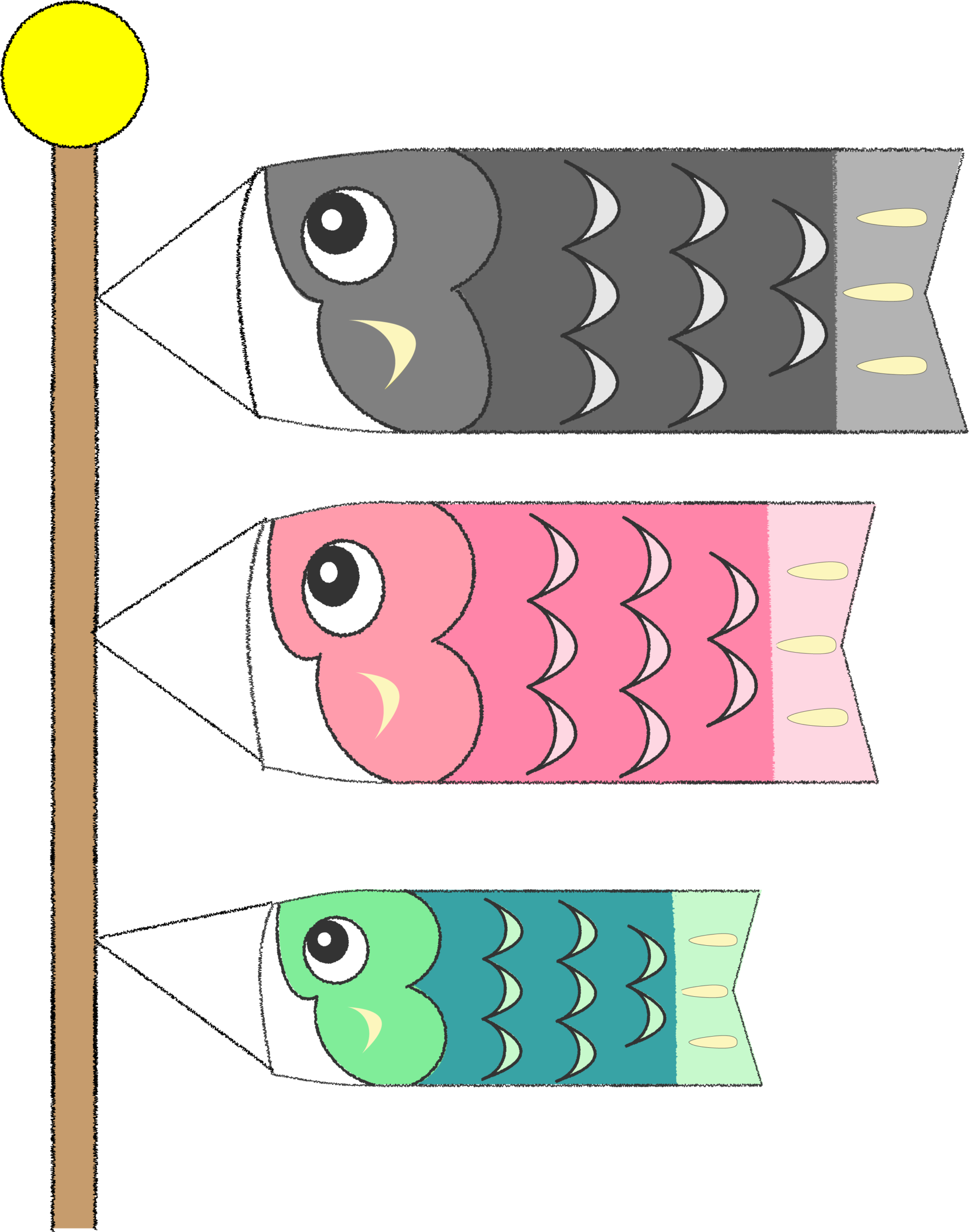 こいのぼり3匹セットのフリーイラスト(竿付き)