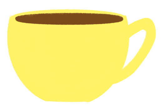 黄色いシンプルなコーヒーカップのイラストです。カフェ・コーヒー・休憩・おやつタイムなどのシーンに使いやすいデザインです。商用利用無料でダウンロードできます。