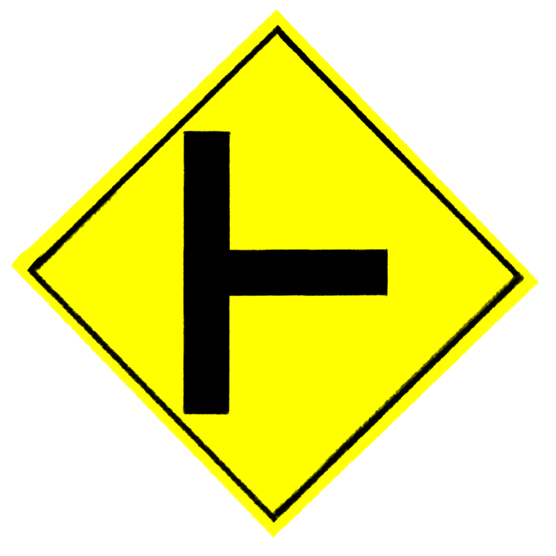 右方向丁字路の道路標識のイラスト