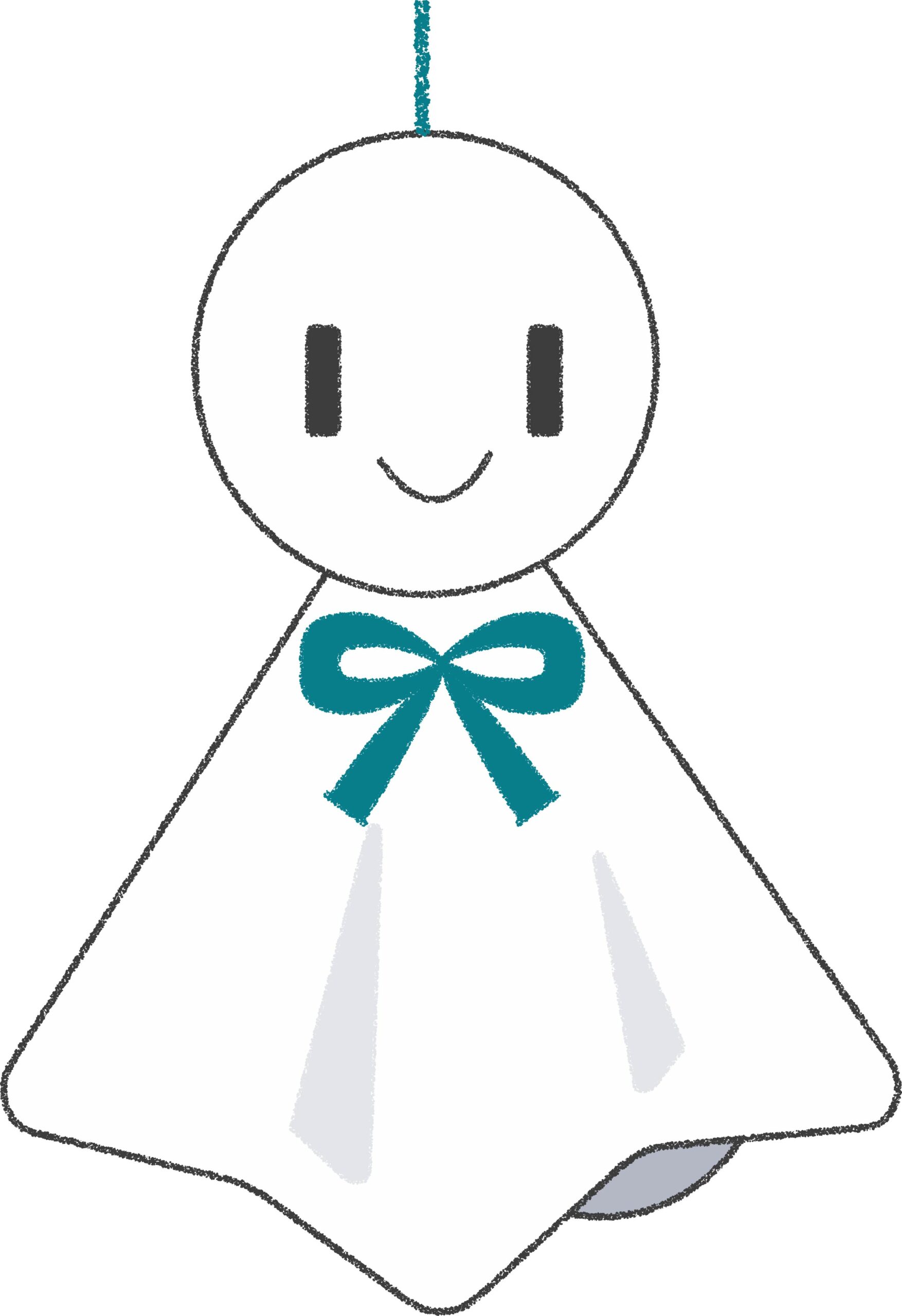 かわいいてるてる坊主・青リボンのイラスト素材