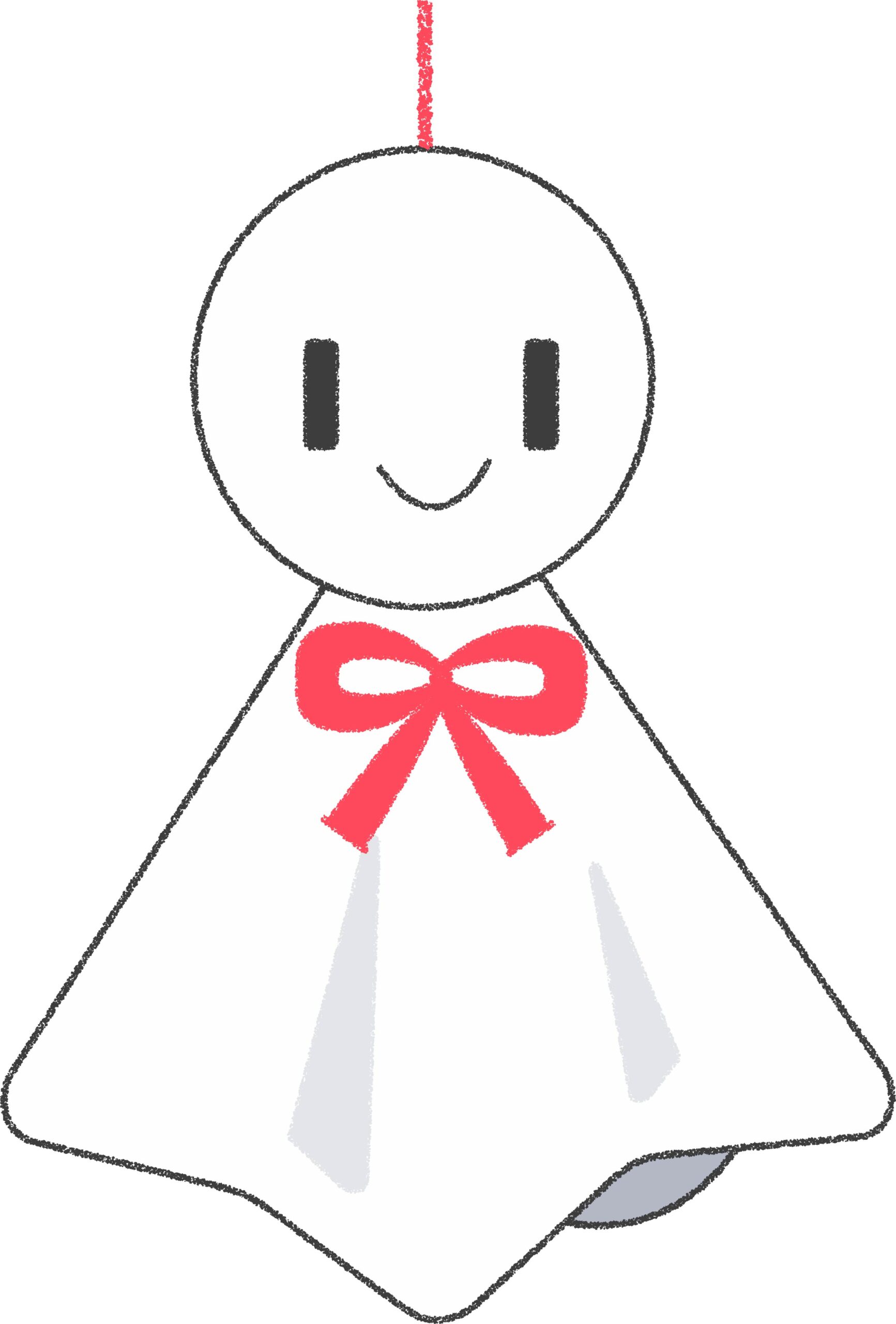 かわいいてるてる坊主・赤リボンのイラスト素材